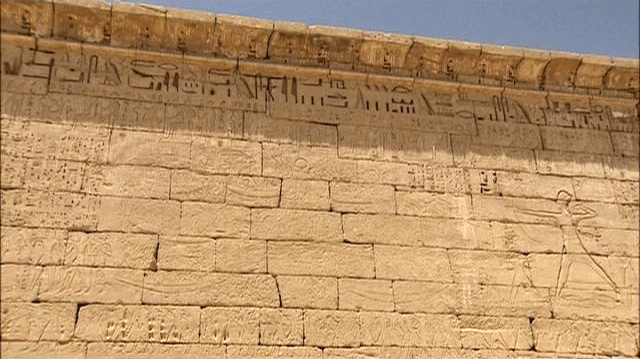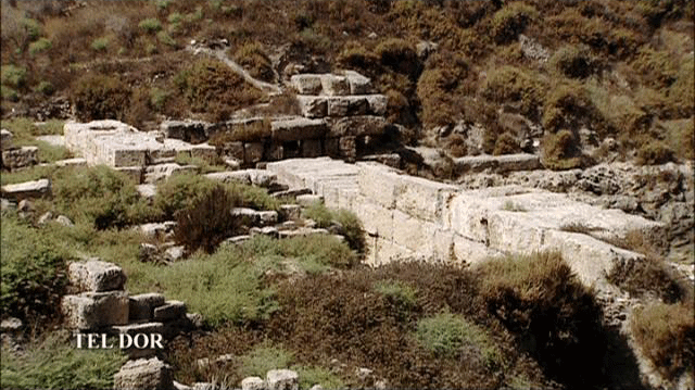 Tel Dor [Ayelet Gilboa, University of Haifa] One of the main [inaudible] outcomes are what we call the movements of the Sea Peoples which are still, after 100 years of research, a very mysterious group of people. Most people think that they came from somewhere in the West -- maybe Greece, maybe Anatolia -- which is West to us -- possibly Cyprus -- and settled in our region on the coast of the Levant. Now among these people, the most celebrated, the most famous ones are the Philistines. We all know the Philistines from the Bible. But there were many groups of Sea People. We know them, name by name, from the Egyptian records -- mainly from the Egyptian records -- and from some Canaanite records, too. Among them -- again there were many -- but were such people as Sikila, Shardana, Lukka, Eqwosh, and many other names which are very hard to define archaeologically. [Narrator] What can we learn from the Canaan and Egyptian sources? In Medinet Habu, in upper Egypt, a monumental inscription dating from Ramesses III, describes attacks carried out by unknown invaders. The carvings show a military campaign and a naval battle: capsized boats, archers, men fallen into the sea. Egypt's adversaries are clearly depicted.