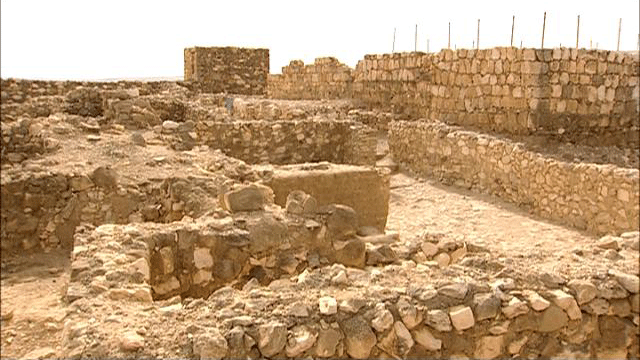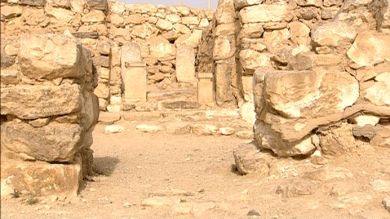we find the sacrificial area. The courtyard gives on to A SANCTUARY reserved FOR PRIESTS ONLY. Beyond that, THE HOLY OF HOLIES, with two altars and two vertical stones, representing what the bible ENIGMATICALLY CALLS the matzevah. This temple is a place of worship like those that existed outside of Jerusalem in the 8th century. [Israel Finkelstein] IF WHAT WE THINK ABOUT THIS TEMPLE IS CORRECT, we have a very interesting situation of the difference between the 8th and the 7th centuries, B.C. In the 8th century, we have temples in various places in Judah [?], including this one behind me, Beersheba, which is not far from here, and other places. Whereas, in the 7th century, they all disappear, and we have the temple in Jerusalem.