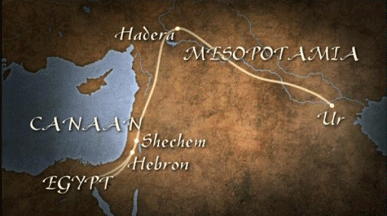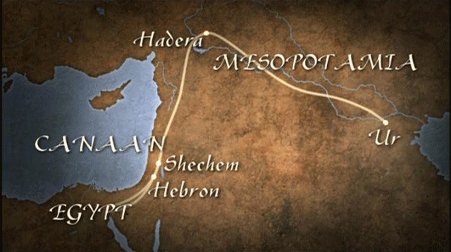 Then suddenly in Chapter 12, we turn to something else: the story of Abraham and thus the origins of the Hebraic people. With this call that Abraham receives from God, the Lord said unto Abraham, "Leave this land and your ancestors, the house of your father, and go to the land that I will show you." [Narrator] The Bible describes the Patriarch Abraham, his wife Sarah, and his nephew Lot leaving their land with their herds, and heading for the promised land, in response to a divine order. The Biblical text describes a veritable migration over thousands of kilometres, from Mesopotamia toward Egypt, and then Canaan. In accordance with the romantic and orientalist conceptions of the period, 20th century researchers imagined Abraham as a bedouin ...