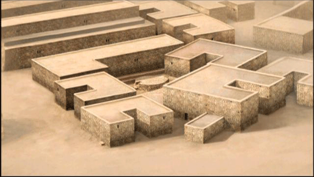 At that time, Megiddo was an important administrative, cultural and economic center with monumental buildings, fortifications, and temples. Far from being an arid landscape suitable only for herders, the strata of the period corresponding to Abraham's migration [?] reveal a city-state of almost 2,000 inhabitants. At that time, Canaan was an economically developed region with a very dense network of city-states. Doubts are raised about the chronology that has been proposed by traditional interpretations of the Bible. But what of the migration [?] itself? Canaan is a buffer zone, situated in between Egypt and Mesopotamia. And these empires have left a number of vestiges. Megiddo is one of the sites where such material abounds. This book of stone will allow us to read the ancient pages of the history of Egypt and Mesopotamia,