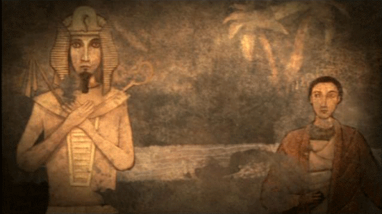 [Thomas Romer, University of Lausanne] Egypt is omnipresent in the Hebrew Bible. It is often a land of welcome. Abraham went there because of the famine in Canaan. as did Jacob and his son Joseph later on. It was also a land of asylum, attracting many political refugees. They always had relations with Egypt. Sometimes those relations were complicated; sometimes they were simple. But there were no real ideological issues, because in fact, there was not much talk in the Bible of the Gods of Egypt. So what is important with Egypt is that it was constantly in the minds of all the Biblical authors. [Narrator] Joseph's STORY in Egypt begins at the end of Genesis, the first book of the Bible. Sold by his brothers to caravan drivers on their way to Egypt, he was bought by an officer, and introduced into the Pharaoh's court where he became the GRAND VIZIER! The Bible tells the STORY of his REMARKABLE FATE.