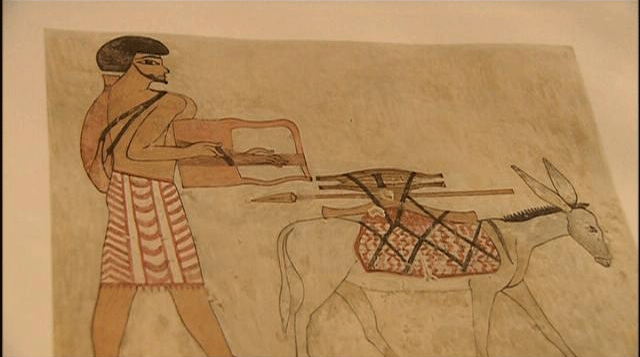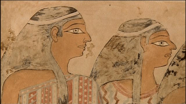 These show details of women that are not at all Egyptian, with these patterns here. The faces are quite typical of how the Egyptians saw the Semites, with long pointy beards and thicker hair. [Narrator] The traders were not the only ones attracted to Egypt. The land of Canaan was subject to very dry seasons, and irregular rainfalls, resulting in frequent famines. Herders and farmers had no other choice but to go to Egypt to work as laborers and take advantage of a more hospitable land. That hospitality was a gift of the Nile,