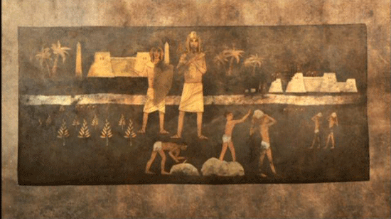 where SUDDENLY, Israel finds itself in A SITUATION OF OPPRESSION and SLAVERY? This transition in fact occurs at the end of Joseph's STORY, because Joseph sends for Jacob and all his family. And IN FACT [?], it's the Israelites who EXPANDED and GREW in number. The Book of Exodus opens with the following finding: A new Pharaoh came to power who NO LONGER KNEW JOSEPH or what he had achieved. So, ALL OF A SUDDEN, the picture changes. And we find ourselves in a state of OPPRESSION. On the one hand, the Egyptians wanted to retain their workers, but at the same time, they were AFRAID. They tried all sorts of methods TO GET RID OF THEM, as is related in the Biblical text: "But the more we oppress them, the more they are fruitful and multiply." [Narrator] The Bible refers to the names of two cities that the Israelites APPARENTLY built: Pithom and Ramses. Egyptian documents CONFIRM that a city by the name of Pi-Ramses was built in the Nile Delta in the 13th century B.C. under PHARAOH Ramses II. From the 1920s onwards, archaeological missions began looking for the remains of that city, located east of the delta in Qantir.