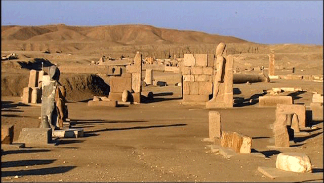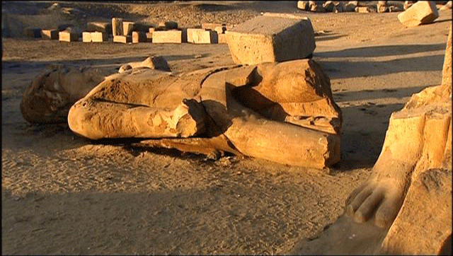[Narrator] Today, the site has once again become farming land. But archaeologists have succeeded in finding the solution to THE ENIGMA. The City of Ramesses was ABANDONED, just after its construction, when one of the branches of the Nile dried up. A few decades later, its monuments were taken apart, and the stones were re-used in the construction of a new capital -- Tanis -- situated a very dozen kilometres away.