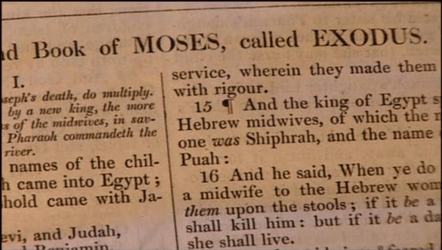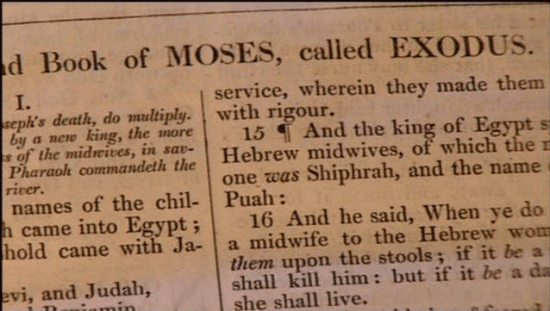So far, nothing appears to CONTRADICT the fact that Ramesses II was the impressive builder-Pharaoh that we read about in the Bible, the same [?] Ramesses II that Moses pleaded with in the name of God and his ancestors to LET HIS PEOPLE GO. In the Bible, the life of Moses begins AS IN A MYTH: his mother set him afloat in the river Nile, in order to ESCAPE the authorities' ORDER OF DEATH of all first-born Israelites. He was taken in by the Pharaoh's daughter, and raised as an Egyptian noble.