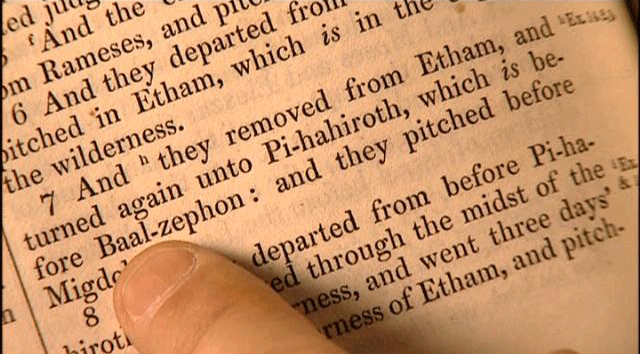 Can they give us any clue to when this was written? [Donald Redford, University of Pennsylvania] The geographical clues can, in fact, help to date the person who put this down. That's true. When one does that, one comes up with A FAIRLY GOOD IMPRESSION of what the writer knew, and the geography that he was familiar with. And that would help to plug him in in terms of chronology. "When did he live?" [Neil Silberman] When was that time? [Donald Redford, University of Pennsylvania] Well, Pithom, as I say, has been identified as the city called Per-Etham, the House of Etham. This was built by Pharaoh Necho II around 600 B.C. Certainly not before 605 B.C. That's one item. Going out of Egypt you have such names as Etham, Pi-hahiroth, Baal-zephon -- all of these are known from the later geography of Egypt. They weren't around -- many of them -- in the new kingdom WHEN THE STORY IS SUPPOSED TO HAVE TAKEN PLACE. I would see the Saite Period, what we call the Saite -- that's the 26th dynasty, from 664-525 B.C., as a period, kind of an OPTIMAL PERIOD, for the general background of the STORY as we have it in Exodus. At any rate, we've limited it to 7th, 6th centuries before Christ. [Narrator] So, as in our investigation of the Patriarchs, both the clues gathered in the field, and the texts point in the same direction: CERTAIN STORIES, INCLUDING THE EXODUS, started to be written down in the 7th century B.C. [?] Neil Silberman has returned to Megiddo.