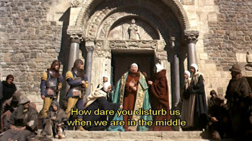 God's teeth! Can a man not be left alone to dine in peace in his own home? [Townspeople] The bishop's coming. [Bishop Guido] Pietro di Bernardone, this will not do. How dare you disturb us when we are in the middle