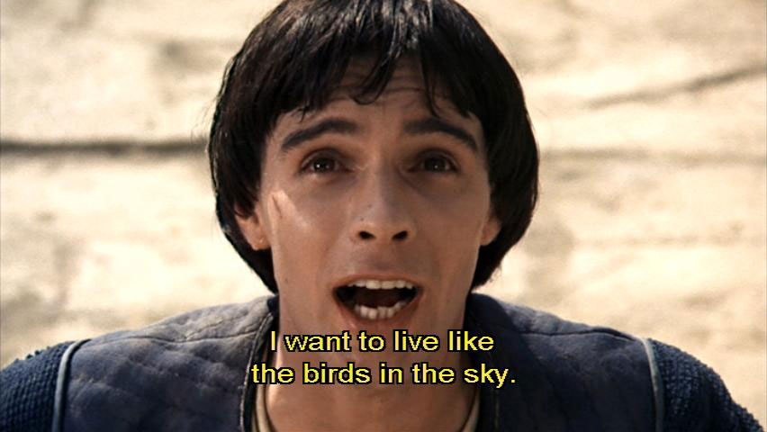I'm not worthy. [Bishop Guido] Then what do you want? [Francesco] I want to be ... to be happy. I want to live like the birds in the sky. I want to experience the freedom and the purity that they experience. The rest is of no use to me.