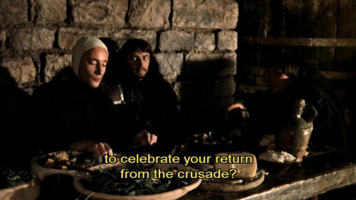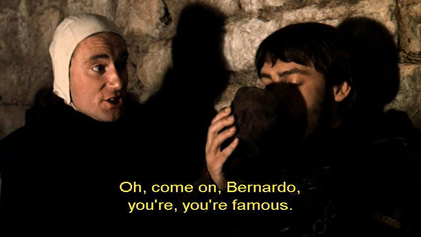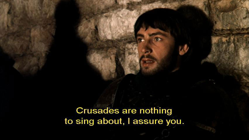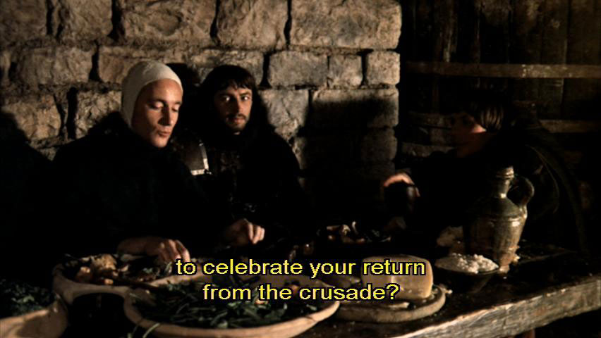 to celebrate your return from the crusade? [Bernardo] Crusades are nothing to sing about, I assure you. [Sylvestro] Oh, come on, Bernardo, you're, you're famous. You're a war hero. I say, you must have slaughtered thousands of Muslims. [Bernardo] What?