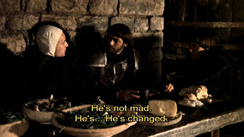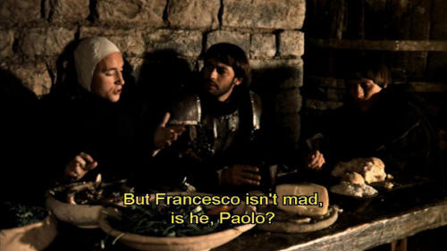 He's pissed, as usual. But Francesco isn't mad, is he, Paolo? No. He's not mad. He's ... He's changed. [Giocondo] He is mad. A raving bloody lunatic. Only a lunatic will believe that God Himself