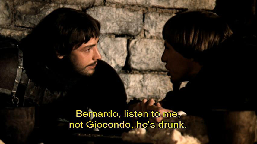 He might need our help, for God's sake. [Paolo] Bernardo, listen to me, not Giocondo, he's drunk. Francesco's not mad. Maybe he's very sane indeed. But you are a hero of the crusades. You can't afford to have your name associated with his. [Bernardo] What?!