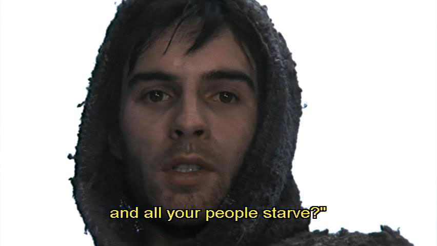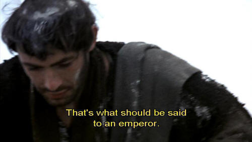 What good is your life to you, if your riches bring you no peace of mind and all your people starve?" [Bernardo] That's what should be said to an emperor. [Sylvestro] You mustn't listen to him, I warn you! If you're going to say things like that,