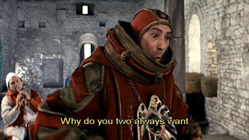 The boy's going off to war. Besides, I don't understand a damned word. [Francesco] [Laughs] [Pietro di Bernardone] Why do you two always want to leave me out of everything?