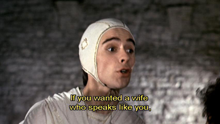 Don't speak French when I'm around. How many times do I have to ... [Francesco] If you wanted a wife who speaks like you, why didn't you marry some thick-headed butcher's daughter? [Pica] Bravo, Francois, Bravo!