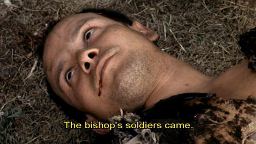 [Woman] The bishop's soldiers came.