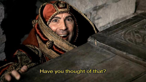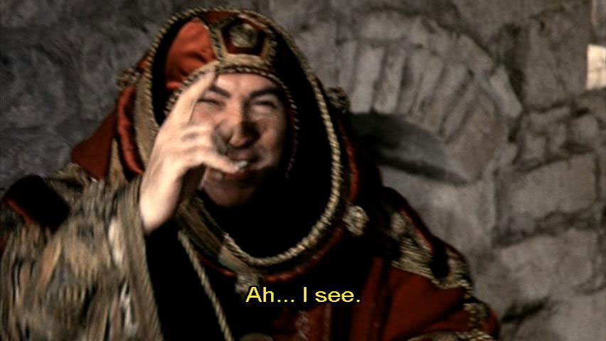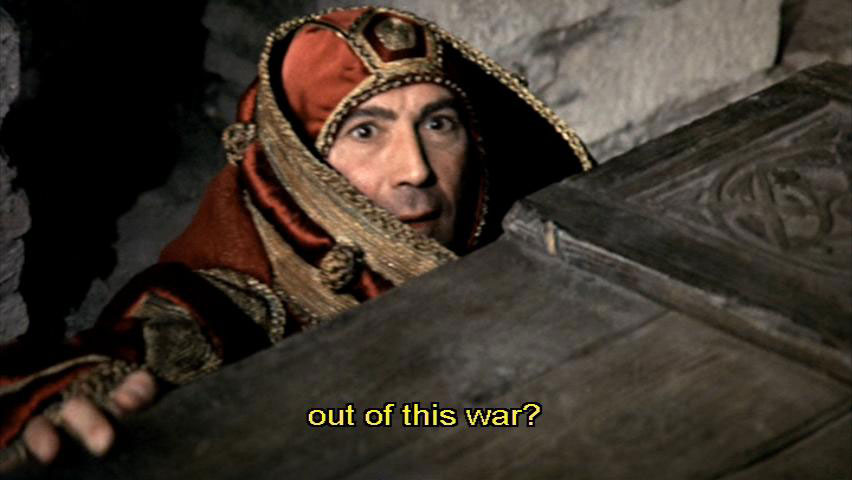 [Francesco] Hey, wait, we must talk. What shall we do with all the money we'll make out of this war? Have you thought of that? [Pietro di Bernardone] Ah ... I see.