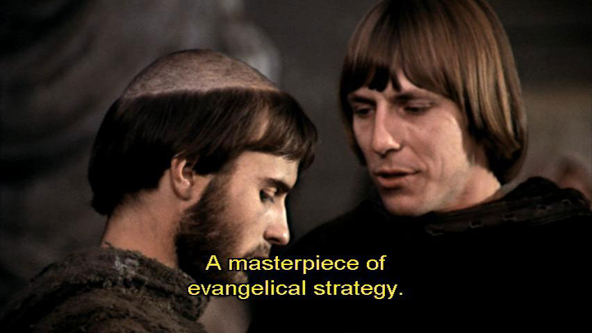 [Paolo] Read it out exactly in the way it is written here, changing nothing. Do you understand? Francesco? [Paolo] Read it out word for word. A masterpiece of evangelical strategy. I almost believe it myself.