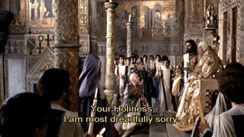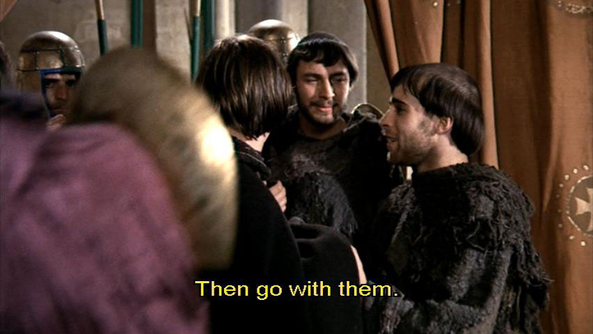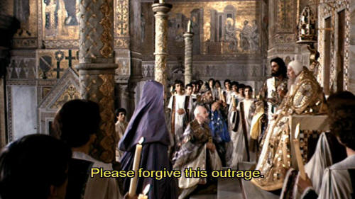 [Paolo] I am with them. [Guard] Then go with them. Quiet! Quiet! Move along. [Cleric] Your Holiness, I am most dreadfully sorry. Please forgive this outrage.