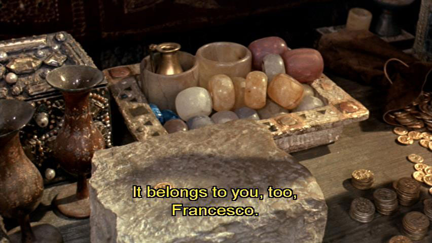 It belongs to you, too, Francesco. Don't forget that. [Slaves singing] God bless the master of this house And a lu-la-lu-la-lo And a lu-la-lu-la-lay Now milady, lady of