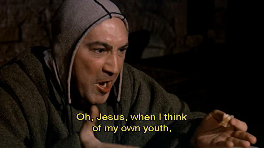 [Pietro di Bernardone] Oh, Jesus, when I think of my own youth, I feel like flaying him alive. [Pica] That's typical of you. Treat him like, like one, like one of your clerks who comes to you whenever you stamp. But, but, but Francesco's not like that, Monsignor. [Pietro di Bernardone] No?