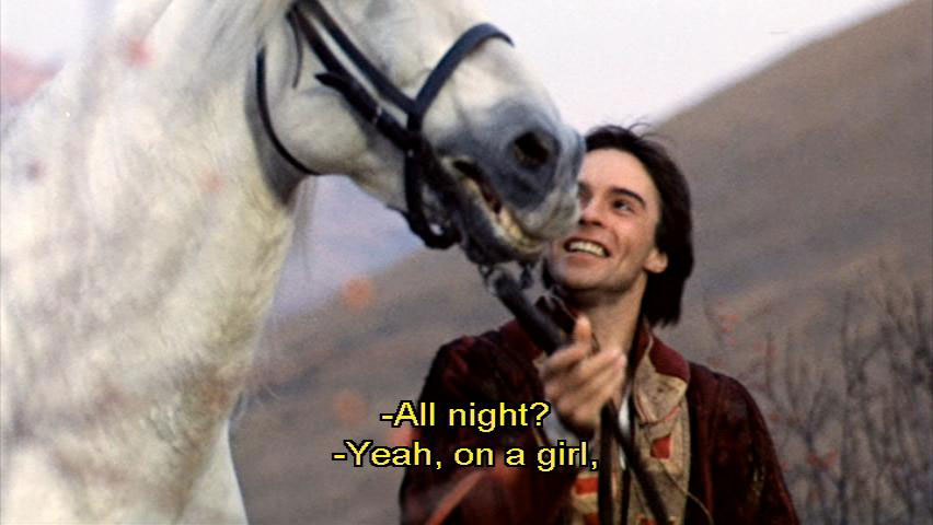 [Giocondo] Francesco, please! [Bernardo] Come on! We've been riding all night, too. [Giocondo] All night? not on a horse. [Giocondo] And tomorrow, we'll be riding to battle. We must be mad.