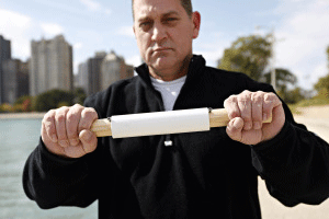 He fashioned something like a rolling pin. Starting with a wooden dowel the thickness of a clothing rod, he sawed off a 16-inch piece. Around it he fit a 7-inch length of PVC pipe. To keep the PVC from moving side to side, he sunk drywall screws into the dowel on either end of the PVC.