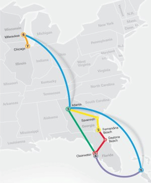 Jason left the highway at Daytona Beach and worked his way north on smaller roads, stopping for the night in Fernandina Beach, near the Florida/Georgia border.