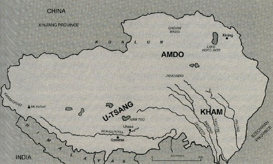 Chapter 1: Contact Even after stripping away centuries of myth and cliche, Tibet still invites hyperbole. This is largely due to its being situated on real estate best described by superlatives. Averaging almost five kilometers above sea level and covering an area the size of the American Southwest, it is surrounded by some of the planet's highest mountain ranges: the Himalayas to the south, the Karakoram to the west, the Kunlun to the north. Within these imposing natural borders, most of northern and western Tibet -- a third of the country -- is a barren mountain desert of wind-blown dunes crusted with salt deposits. Life in these parts is barely present, nor welcome. In the northeast -- in a zone known among Tibetans as the province of Amdo -- the terrain is akin to the Mongolian steppes, with its grassy veneer sustaining a sparse population of hardy alpine animals. In the southeast quadrant known as Kham, Tibet drops slightly in altitude, and the topography devolves into the exaggerated slopes, impossibly narrow valleys, and gnarled conifers normally associated with Chinese watercolors. It is the central plateau, however, that has become synonymous with the landscape of Tibet. Encompassing the provinces of U and Tsang, it is a harsh, rocky land of hypnotic beauty where, because of the altitude, light seems to intensify color and detail. Here is a world where animal life copes through unique adaptations: an indigenous breed of horse with double the lung capacity of its low-land cousins, or a species of beetle containing a glycerol "antifreeze" that lets it function in the snow.[1] The cultures of Tibet reflect these various ecosystems. In the northern and western deserts, the parched, frigid dunes have traditionally kept the region free of human habitation, save for transient trade caravans. To the northeast, the sparse population of Amdo finds little recourse on the steppes other than to eke out a living as seminomadic herdsmen -- or marauding bandits that prey on the same. In the southeast, residents of Kham make the most of river valleys, using them for both pastureland and terraced agricultural plots. Tall for Asians and often lacking the Mongoloid eye fold (giving them a passing resemblance to American Indians), Khampas have earned a reputation for being clannish, courageous, and socially unpolished. This has not stopped them from making their mark as accomplished traders, plying their goods in China, India, and other parts of Tibet. [2] Once again, it is in the central plateau where stereotypical Tibetan culture can be found. Clustered around arable meadows, inhabitants of this zone focus on animal husbandry and growing the most robust of crops, such as barley. Central Tibetans at one time also boasted a formidable martial spirit; in the late eighth century, they conquered territory as far south as the Indian plains and as far west as the Muslim lands of the Middle East. Although such prowess has since been replaced by spiritual introspection, central Tibetans have maintained a lock on the country's political power. Dominating the thin upper strata of Tibet's religious bureaucracy and lay aristocracy, they often assume a pampered, elitist air toward the more rural Khampas and Amdowas. Despite such diversity, all the peoples of Tibet share two basic historical truths. The first is the prominent role of religion in daily life. All Tibetans are believed to have descended from nomadic tribes in the eastern part of central Asia. However, it is not their common ethnic stock but rather a shared devotion to a unique brand of Buddhism -- blending metaphysical teachings from India and indigenous Bon shamanism -- that has lent them a unifying identity. With its rich pantheon of demigods and demons filling a complex cosmology, Tibetan Buddhism is a superstitious and highly ritualized set of beliefs that permeates society. Traditionally, more than a quarter of Tibet's male population -- usually one son in every household -- chose a life of religious celibacy. Within this number, specialized monks came to serve in such diverse roles as servants and athletes. Their sprawling monasteries not only doubled as houses of worship and learning centers but also held sway over vast manorial estates that managed the bulk of national economic output. Three-quarters of the national budget, in turn, was dedicated to education for the priesthood and maintenance of religious institutions. [3] Religion even came to replace Tibet's need for more traditional forms of diplomacy. Beginning with the Mongols in 1207 -- and succeeded by the Manchus in the eighteenth century -- there arose an enduring priest-patron symbiosis whereby the suzerain of mainland Asia was largely held at bay in exchange for Tibetan spiritual tutelage. The second historical truth is that geography has been Tibet's savior. Occupying a strategic crossroads at the heart of the Eurasian landmass, Tibet has been coveted for centuries by surrounding empires. As a consequence, despite its priest-patron accommodation with the suzerain, it has repeatedly suffered the humiliation of occupation by various neighbors. Subjugation of the Tibetan population is a wholly different matter. Owing to its high altitude, invaders from the lowlands invariably weaken in Tibet's thin air. Aside from more lasting incursions onto the edge of the Amdo plains or across the Kham river valleys, foreign expeditions against the central plateau soon found the cost of sustaining a military presence prohibitive, affording the Tibetan heartland extended periods of de facto independence. The Historical Divisions of Tibet By the start of the twentieth century, however, these historical truths were under pressure. The Manchu dynasty, crumbling from within and fraying at the periphery, had its nominal control over Tibet challenged in 1904 by a British expedition staging from India (England, vying with Russia for imperial influence, wanted to extract trading privileges from the Tibe