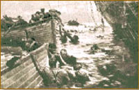 A contemporary illustration of the sinking On May 7, the ship neared the coast of Ireland. At 2:10 in the afternoon a torpedo fired by the German submarine U 20 slammed into her side. A mysterious second explosion ripped the liner apart. Chaos reigned. The ship listed so badly and quickly that lifeboats crashed into passengers crowded on deck, or dumped their loads into the water. Most passengers never had a chance. Within 18 minutes the giant ship slipped beneath the sea. One thousand one hundred nineteen of the 1,924 aboard died. The dead included 114 Americans. Walter Schwieger was captain of the U-Boat that sank the Lusitania. He watched through his periscope as the torpedo exploded and noted the result in his log, "The ship stops immediately and heals over to starboard quickly, immersing simultaneously at the bow. It appears as if the ship were going to capsize very shortly. Great confusion is rife on board; the boats are made ready and some of them lowered into the water. In connection therewith great panic must have reigned; some boats, full to capacity are rushed from above, touch the water with either stem or stern first and founder immediately."