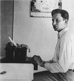 The budding science-fiction writer poses at his typewriter during a visit to his parents on the island of Guam in 1928. Hubbard learned to fly a glider while at George Washington University. He acquired the uniquely appropriate nickname of 'Flash' and liked to be described as a 'daredevil speed pilot and parachute artist'. Dianetics makes its inauspicious début, in the pages of a pulp science fiction magazine.