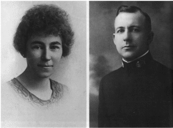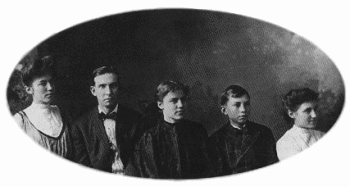 Abram Waterbury, L. Ron Hubbard's great-grandfather, playing the fiddle carved with a negro's head that became part of the family legend. Ron's grandfather was supposed to have owned a quarter of the state of Montana. Here he is seen as he really was, a struggling veterinarian, pictured with his wife and their first child (Ron's mother) at Tilden, Nebraska, around the late 1880s. Ledora May Waterbury, Ron's mother (left), with an unknown relative, her sisters Toilie and Midgie and brother Ray photographed in their home town of Helena, Montana. Ron's long-suffering mother. He remembered his mother sometimes with affection, sometimes with deep dislike. Harry Ross Hubbard in the dress uniform of an officer of the U.S. Navy. Promotion eluded him and debtors pursued him.