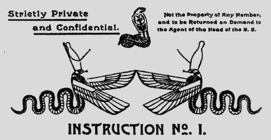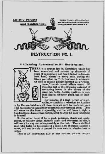 This does not mean that you are at liberty to repeat what you have learned to anyone whom you believe to answer that description, but that you can exchange views with your co-disciples who are pledged as you are yourself. I can do no better, I believe, than give at once some of the oral and written precepts from the same book above mentioned as pointed out by the Master.