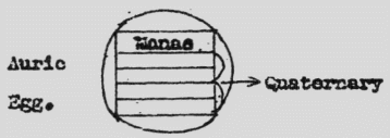 "Pass-not." 12. With reference to the "Pillar of Light" in Question 3, is the Auric envelope the Higher Ego, & does it correspond to the ring Pass-not? The question was not answered, as going too far. The ring Pass-not is at the end of the manifested Unvierse. Nidanas: 13. The root of the Nidanas is Avidya: How does this differ from Maya? How many Nidanas are there esoterically? (Ans.) Again, asks too much. The Nidanas, the concatenation of causes & effects (not in the sense of the Orientalists) are not all caused by ignorance. They are produced by Devas & Dhyan Chohans, who certainly cannot be said to act in ignorance. We produce Nidanas in ignorance. Each cause started on the physical plane sets up action on every plane to all eternity. They are eternal effects, reflected from plane to plane on to "the screen of eternity." Manas & its Divisions: 14. What is the septenary classification of Manas? There are seven degrees of the Lower Manas, & presumably seven degrees of the Higher. Are there then 14 degrees of Manas; or is Manas, taken as a whole, divided into 49 manasic fires? (Ans.) Certainly there are 14, but you want to run before you can walk. First learn the three, & then go on to the 49. There are 3 sons of Agni; they become 7, & their sons are 49. But the students were still ignorant how to produce the 3. Learn first how to produce the "sacred fire" spoken of in the Puranas. The 49 fires are all states of Kundalini, to be produced in ourselves by the friction of the Triad. First learn the septenary of the body, & then that of each principle. But first of all learn the first triad (the 3 vital airs) as directed in Lessons 1 & 2. Colours & Cord: 15. The Nadis extend from the lowest lumbar vertebra to the atlas. Have these any physical correspondence in the spinal cord, which extends only from the first lumbar vertebra to the atlas? & does the region through which the colours are to be raised correspond with the entire length of the cerebral canal, which, in the adult, terminates on the coccyx? (Ans.) The coccyx is the great line of