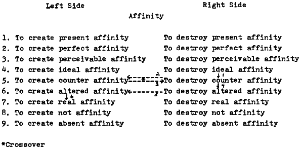 that are causing things. This completes OT 6, which I will be discussing momentarily. Let us look at OT 7. You have only 4 actions: (1) Verify that "Think a placed thought" is already flat, and if not, flatten it, (2) Tell me what an intention is to EP, (3) Place an intention in that object/person to EP, and (4) the Dual OT 7 R/D, which I will describe in the next few pages. Now on OT 6 the pc gains the freedom from the inability to operate exterior, gains the ability to operate fully as a thetan exterior in a pan determined fashion, and it also extends the influence of the thetan to the universe of others. If the pc has any trouble doing these things, it is wise to check for more "fleas", that is do more OT 3. I am using the historical terminology, "fleas", on this historical technology of OT3. Will Durant referenced Buddha getting all of the fleas off his body. Jesus went off to the desert for 40 days and nights to get all of the spirits out of the body in question. There have been other times and locations where the technology of getting rid of fleas has existed, The whole subject of exorcism is 50% clarified here, and the remaining 50% is clarified in a later chapter, "The Final Ditch". Perhaps a profound reason that the churches have been held back so severely in their putting people up through OT 3 processing is that the releasing of these particular spirits, which have not been cleared by a properly-done lower bridge being put in on them, is just the action of putting more crazy people into the environment. That is an unethical thing to do, and an overt of magnitude if one believes in such things. The only ethical way to audit people is to do all of it, or none of it, for once a case is started it is going to run off. If they do not run it all off with you, they are going to run it off on their neighbours and everyone else in the environment until it is complete. So, a lot of these people that got started on their cases, should not have, for they are going to complete it on the environment. The point I am making here is that to prematurely wake up crazy beings and release them into the environment in that state serves very little service to mankind. It may be freeing the individual, but it can ruin a group. Such activity is one of the many ways that society has gone crazy in the past, and thus you will note public reluctance on this line of activity. They instinctively abhor rotten technology in exorcism, as their engrams on it are not pretty. As an auditor you should note the composite phenomena, aspects, and character of individuals. This OT 3 Incident was discovered by Hubbard in 1967, and by another individual in 1956. Neither recorded it under any copyright; both just ran it. Hubbard was informed of it in 1956, but dismissed it as "impossible", as most of the fools of planet earth do to this day. It is taking all the other determinism's out of one's space, and thus one gets a restoration of self determinism. I will now describe the Dual OT7 Rundown: You assess the complete Section of the Pre-Have Scale (in Appendix) on the individual. Mark the read and circle it. Assess the dynamics. From those 2 reads form up a listing question for the L&N. For instance, let's say "foiled" and "3rd Dynamic read", then your listing question would be: "What has caused you to be foiled on the 3rd dynamic?" List that down to the BD FN item, give it to the pc, and that will produce the OT7 EP: it will free them from the inability to project intention, and rehabilitate their intention. This action gets off the life ruin of the thetan. Now that these 7 OT levels are complete, you should stabilise the pc's gains with OT Stabilisation Drills, which are listed on page 720 in the Appendix. The next action is to take up the inability side of OT 8, which is freedom from the inability to be totally free and at total cause, which you can achieve with these 14 2-way comm. processes: