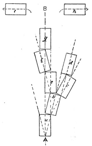 In this figure the centre line A B represents the general direction of evolution for the race at large, and the small parallelograms represent a few individual lives. Taking the life a first, its place on the centre line shows that the Karmic impulses from the previous incarnation are in accordance with the normal tendency of the age. But the privilege of partial Free Will, which the person whose life is in question enjoys, enables him to modify the tendency of his individual evolution either to the right or the left, to the extent shown by the dotted lines. He cannot modify that tendency more than is shown by the dotted lines, for he is hemmed in by the limitations of Karma and circumstance, in so far as the side lines of his parallelogram restrain the divergence. Let us assume that the direction to the right is towards spiritual good — that to the left, towards spiritual evil. If the individual concerned makes the necessary efforts during the life, represented by a his next incarnation has a general Karmic tendency in the direction of the centre line of the life b. Supposing, again, efforts in the direction of the better spirituality determine a further inclination of the centre line of life towards the right, then the third life of the series will be in the direction of c. And it will be obvious that a few more lives of similar effort will finally establish the centre line of the life at right angles to the original centre line — as in the case of the parallelogram h, which may be taken to represent complete adeptship in harmony with the Divine idea of absolute good. But at every step of the process the Free Will of the individual is an uncontrolled agency in the matter, and it will be always possible before the complete perfection of the h life is attained that the individual in question may swerve in the wrong direction. Thus the energies of the life c may be misdirected, and give rise to a subsequent incarnation in the direction d, and one more wrong swerve in that case would bring back the Ego into the original main current of commonplace evolution. At any stage of his progress along that centre line an evil swerve will take him in the left-hand direction, and determine a new life with its predominant bent towards evil, as in the case marked f. And persistence in the evil tendency will, in a few lives, establish the Ego on the horizontal centre line in the left hand direction, which may be taken to represent the course of absolute evil, which, like that of absolute good, disentangles an Ego from the main current of evolution altogether, under conditions dealt with in theosophical teaching. It will be seen that the general probability in regard to a great majority of lives — considering the complex tendencies of human nature — will be such that most Egos will swerve now to the right and now to the left in such a way that they continue in the main current of evolution. But to make the diagram a little more significant, we may suppose that the main centre line, A B, is not a straight line, but the arc of an enormous circle bending towards the right, so that in the great procession of the ages the great majority will be slowly borne round towards the direction of good — this tendency representing that general preponderance in the long run of the principle of good as compared with the principle of evil, nearly balanced as they often seem to be if we take short views of human affairs. And yet another modification might be introduced into the figure, with which I have not thought it worth while to embarrass the drawing, which should give a somewhat greater breadth to each parallelogram as it swerves from the main centre line in either direction representing the increased efficiency of individual Free Will as the Ego inclines more towards spirituality of either sort. This would hasten the possibility of attaining the completely horizontal position as compared with the rate of progress that would be available if the more spiritualised lives were as narrowly hemmed in by the walls of Karma and circumstance as those on the normal centre line. I hope it will not be supposed that in the arbitrary length and breadth I have assigned to the parallelograms in the foregoing diagram I have been endeavouring to indicate the extent to which Free Will is a potent factor in determining the events of our lives. Perhaps if we correlated the figure with events alone, the lateral dimensions would have to be much narrower. But reason about Necessity however much we please, even with the light of the present occult interpretation to fortify the conception, we shall always, when the strain of action comes on, proceed on the practical assumption that we have a liberty of choice before us. And there is not much danger for any one with intuitions sufficiently awake to take in the full significance of the occult interpretation, of his taking, as it were, an unfair advantage of his intellectual knowledge of the occult law. Should any one argue after any given surrender to temptation, " Now the thing is done, and therefore it could not have been left undone, and it is useless to make a fuss about it," then the answer would be that the application of such a feeling, state of consciousness, or spirit, to the Karmic result just accomplished would be the very worst possible spirit in which it could be enveloped for its transmission through future ages as a new Karmic force. It must be remembered, after all is said that can be said about the lateral play of Free Will as regards acts, that the law concerned is mainly related to thought in reference to acts. For the last few pages I have been dealing with an all-important qualification of the main rule, but let us now revert to the consideration of the main rule, always keeping the qualification at the back of our minds, but treating the extent to which Free Will can make the centre line of evolution swerve to the right or left as having chiefly to do with the ma