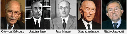 In 1989, Cercle investigator David Teacher claimed that Munoz was a "senior Opus Dei member" (190). Judging by most of his career, Munoz was not in the camp that, at least in Spain, has traditionally been identified with Opus Dei. However, this religious group transcends political parties and Munoz's later involvement with Le Cercle, Strauss and the Hanns Seidel Foundation certainly made him a close associate of what has often been termed "God's Octopus". THE PANEUROPA UNION and the Vatican never had to complain about France. Whether a president was Gaullist or socialist, at the very least they favored a strong Europe as a political and military counterweight to the United States; and even though Great Britain was accepted into the European Union, it was never able to wedge itself into the dominant Franco-German alliance. This mainly had to do with the French. All French presidents were staunch Roman Catholics, some even connected to Opus Dei, like Robert Schuman, Antoine Pinay, and Valery Giscard d'Estaing, with probably a few others we don't know it about. The French have been the primary motor behind the European Union. Paneuropa member Robert Schuman, through Monnet, laid the foundation for the European Union with the 1949 European Coal and Steel Community (ECSC). In the 1950s, Antoine Pinay founded Le Cercle with the Opusian Jean Violet and Otto von Habsburg. They immediately invited Konrad Adenauer, Robert Schuman and Jean Monnet. Monnet, although mainly connected to Anglo-American banking and political interests, was the Frenchman who organized the 1948 Congress of Europe with Joseph Retinger, came up with the idea of the ECSC, played an important role in the 1957 Treaty of Rome, and later set up his influential action committee. The decade after the ECSC, Bilderberg, Le Cercle and the European Economic Community (EEC) had been created, Violet and Pinay arranged for the Franco-German alliance between de Gaulle and Adenauer. This was in January 1963 and just in time for a possible acceptance of Britain into the EEC. De Gaulle, however, vetoed Britain's entry anyway, which guaranteed Franco-German dominance of the EEC for the years to come. Coudenhove and Habsburg adored de Gaulle not only for giving France a strong military and even its own nuclear arsenal, but also for his leadership role in furthering European integration (191). In 1969, however, after de Gaulle had steered Europe too much in an anti-NATO, anti-Anglo-American, and domestically too Conservative course, he had built up so much opposition against himself that he was forced (or forced himself) to resign. His more moderate right hand man, Georges Pompidou, a person in close contact with the Cercle and a long time employee of the Rothschild Bank, took over. Pompidou's éminence grise became nazi-collaborator Georges Albertini, who worked at Banque Worms, coincidentally said to have been a major Synarchie front. Albertini worked with Jean Violet and Brian Crozier in both The 61 and the Cercle. He also briefed the Pope on several occasions. In 1973, at the recommendation of Georges Pompidou, Otto von Habsburg became the new president of the Paneuropa Union, as Coudenhove-Kalergi had died the year before (192). Pompidou himself suddenly died in 1974 and the interim president became Alain Poher, a member of Le Cercle who was president of the French Senate from 1968 to 1992. He had earlier served as acting president when Charles de Gaulle died, but lost the election to Pompidou. This time Poher lost the election to Valéry Giscard d'Estaing, a Knight of Malta and good friend of Jean Violet, who became the next president of France until 1981. Giscard, his father Edmond, together with associates as Prince Jean de Broglie, Robert Leclerc and members of Le Cercle are said to have introduced Opus Dei to France (193). More on Giscard in a minute. Things changed in 1981, when the socialist Mitterrand became president of France. One family who couldn't appreciate the new socialist policies were the Rothschilds, who saw their family bank nationalized. They had to shift attention to New Court, their securities firm in New York at Rockefeller Center with stakes in corporations as TRW and Hughes Aircraft (194). But even though Mitterrand was a socialist, he also was a an ardent Catholic who favored European integration. Also, Georges Albertini already anticipated the victory of the socialists and brought Mitterrand's closest friend and confidant, Francois de Grossouvre, into the Cercle six months before the elections. When Mitterrand was elected in 1981, he appointed de Grossouvre as coordinator of security and intelligence (195). Four years later de Grossouvre and Admiral Pierre Lacoste, two leading officers in the French stay-behind networks (196), were among a small group that decided to sink the Rainbow Warrior in reaction to the protests of Greenpeace against French nuclear testing at Mururoa (197). Mitterrand, known to have been greatly interested in Machiavelli, stayed a long time in office. Only in 1995 the more Liberal Jacques Chirac took over. Besides being the usual opportunist, Chirac has become a great supporter of European integration and of the failed 2005 European constitution. Before the voting process for the new constitution began, Chirac brought up the old issue of Britain's loyalty to the European Union, saying that if its citizens voted against, it would be clear that Britain felt more strongly about cooperation with the Commonwealth and the US. He then promoted the idea that any country who voted against the constitution could better leave the European Union (198). In April 2005, Chirac went on TV and openly stated that a no to the European Constitution "would halt the European project in its tracks, and pave the way to an unregulated, uncontrolled free-market world, dominated by the United States." (199) Even after these strong statements, the person who oversaw the writing of the European constitution blamed Ch