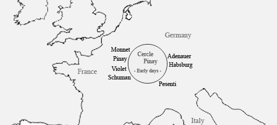 resurrection of the Holy Roman Empire over which Charles V had reigned." [8] November 4, 1969, Greeley Daily Tribune, 'Economic, Social Advancement Aims of New Franco Cabinet': "[Alfredo] Sanchez Bella, aside from his own talents as a diplomat, is the brother of Florencio Sanchez Bella, leader of the Opus Dei in Spain." [9] 1997, Robert Hutchinson, 'Their Kingdom Come', p. 155: "In his journeys, Violet came to know Father Yves-Marc Dubois, a French Dominican who was in charge of international relations for his Order. But Dubois represented more than the foreign policy interests of the black friars of Faubourg Saint Honoré. He was described as a 'member of the Vatican's intelligence network, if not its head'... When in Paris, he [Dubois] stayed in the Dominican chapter house at 222 rue Faubourg Saint Honoré, in the Eighth Arrondissement, within walking distance of Jean Violet's apartment at 46 rue de Provence, in the Ninth Arrondissement." Original source: 1984, Pierre Pean, 'V: Enquete sur l 'affaire des 'avions renifleurs'', p. 49 [10] * June 29, 1997, The Independent, 'Aitken dropped by the Right's secret club': "Formed in the Fifties, Cercle was intended to cement Franco-German relations, as a buffer to Soviet aggression during the Cold War." * Sunday Observer on April 6, 2003: "Founded in the 1950s by France's Antoine Pinay and German Chancellor Konrad Adenauer Le Cercle..." * June 18, 2004, Chancellery of HRH Crown Prince Alexander II of Yugoslavia, Reception in honor of the "Le Cercle" conference: "Le Cercle was founded in the 1950's by the former French Prime Minister Antoine Pinay, and Konrad Adenauer..." * September 5, 2004, Sunday Times, 'Le Cercle of the elite': "The club, which has close links to the intelligence services, was founded in the 1950s by former French prime minister Antoine Pinay and former German chancellor Konrad Adenauer." * Also, David Rockefeller in his memoirs claimed he was recruited in 1967 and that Kissinger had been attending earlier meetings of the Cercle. Therefore the Pinay Circle could not have been organized in 1969. [11] April 1986, Issue 11, 'Appendix 2: the Pinay Circle': "The Pinay Circle was set up in 1969 around the former Prime Minister of France, Antoine Pinay. Pinay was very old and seems to have been little more than a figurehead. Its chief fundraiser and leading light is the former lawyer, Jean Violet." [12] 1990, Hugo Gijssels, 'De Bende & Co.', p. 174 (translated from Dutch to English): "Paul Vankerkhoven, renowned member of the Ordre du Rouvre, establishes in 1969 the 'Ligue Internationale de la Liberté (LIL), the Belgian branch of the 'World Anti-Communist League' (WACL). That same year he establishes in Brussels the select but controversial Cercle des Nations... possibly more important is his membership of the notorious extreme-right 'Centre Européen de Documentation et Information' (CEDI) of which Vankerkhoven is secretary-general." [13] 1990, Hugo Gijssels, 'De Bende & Co.', p. 177 [14] The (2nd) Baron Kindersley appears on a January 1973 officers list of The Pilgrims of Great Britain. His name disappeared in 1976, the year that he died. Appointment to the Pilgrims board usually is for life. [15] 2003, Christopher Booker & Richard North, 'The Great Deception, The secret history of the European Union', p. 43: "... Monnet met up again with Arthur Salter. Their first encounter had been in London in 1914..." Christopher Booker, an author of several books, has written for the Sunday Telegraph since 1990 and was a founding director of Private Eye. Dr. Richard North has been a research director for the (eurosceptic) Europe of Democracies and Diversities group in the European Parliament. This book contains quite a bit of information on the life of Monnet. [16] 1981, Carroll Quigley, 'The Anglo-American Establishment' (digital version, which is not complete): "In 1936, at least eleven out of twenty-six members of the council were of the Milner Group. These included Lord Astor (chairman), L. Curtis, G.M. Gathorne-Hardy, Lord Hailey, H.D. Henderson, Stephen King-Hall, Mrs. Alfred Lyttelton, Sir Neill Malcolm, Lord Meston, Sir Arthur Salter, J.W. Wheeler-Bennett, E.L. Woodward, and Sir Alfred Zimmern." A reasonably detailed history on Arthur Salter has been compiled in Monnet's Cercle biography. [17] January 21, 1930, New York Times, 'E. Walker as head of Transamerica': "Mr. Giannini will resign his present office and become chairman of the advisory committee of the corporation at the annual meeting of Feb. 8. Mr. Walker, after becoming chairman of the board, will remain chairman of the executive committee. He will resign the presidency of the Bancamerica-Blair Corporation. Jean Monnet of Bancamerica-Blair, will become vice-chairman of the Transamerica board." December 10, 1931, New York Times, : "A. P. Glannini announced tonight that he personally would head a "fight to the finish" to oust Elisha Walker, chairman of the Transamerica Corporation, and "Wall Street domination" from the corporation which he founded. He made the statement after he had read a letter from Mr. Walker and James A. Bacigalupi to Transamerica's stockholders. He called the letter "an attack on my personal honesty and integrity"... He said the letter had been timed "to catch me unaware" as it was not released for publication until after he had left San Francisco tonight for Ventura and Santa Barbara, where he planned to carry on the battle for proxies on behalf of Associated Stockholders." Giannini won his Transamerica fight in February 1932, which is when Walker had to resign as chairman. Monnet seems to have been fired at the same time. Monnet was also fired as a director of the Transamerica-controlled Bancamerica-Blair Corporation in March 1932. [18] 2003, Charles D. Ellis, James R. Vertin, 'Wall Street People: True Stories of the Great Barons of Finance', Volume 2, p. 28-30 (biography of Andre Meyer): "He brought with him, as Meyer knew he would, a network of con