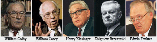 From left to right: Irving Kristol and his son William, Rupert Murdoch, Richard Mellon Scaife and business partner Lord Rees-Mogg, Brian Crozier and his friend Richard Perle, and CCF co-founder and Cercle president Julian Amery. According to Crozier, Murdoch's newspapers were under attack in 1980s by "militant trade unions". Seems Murdoch never forgave them. These media outlets have in common that they are selling a fascist domestic and foreign policy agenda by spreading propaganda and clear cut disinformation. The problem is that it's neither fully CIA nor private. With all these radical Zionists and General Jack Sheehan as a patron of the Henry Jackson Society, it becomes tempting to refer to them in the terms Catherine Griggs, wife of Col. George Griggs, used: the Brotherhood, the Firm or the Joint. This group also has not shied away from reporting on conspiracies and presenting themselves as the religious patriots fighting the "New World Order" and the United Nations. Examples of this kind of disinformation are carefully presented stories that suggest the "radical left" is the mastermind behind conspiracies as Waco, Oklahoma, CIA drugs, high technology sales to China, the murder of Clinton's associates and the murder of William Colby. "Alternative" news publications like Newsmax and Strategic Investment have been involved in spreading this kind of disinformation. Both magazines have counted heavy involvement of Richard Mellon Scaife and Lord William Rees-Mogg. Cercle member William Colby said something very interesting to his friend Senator John DeCamp about these individuals.