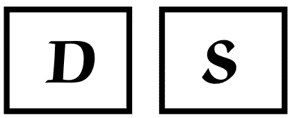 The squares are quite separate. The whole world outside the square D is the world of no dogs: outside the square S, the world of no-study. But suppose now that I want to make the Zero absolute, like our 00, I must say "No dogs are not in my study." Or, "There is no absence-of-dog in my study." That is the same as saying: "Some doge are in my study;" diagram again: