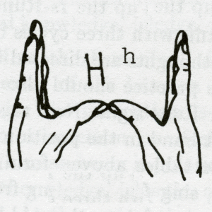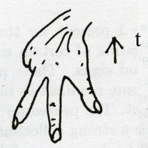 2: Forehead centers (receiving-influence) 3 and 3a: Inner ear centers (clairaudience) 4 and 4a: Parotid glands 5 and 5a: Tear ducts 6 and 6a: Eyes, receiving and sending centers (clairvoyance) 7: Chin centers and lingual gland 8: Submaxillary gland 9: Thyroid gland 10 and 10a: Shoulder centers, sebaceous glands 11: Thymus gland 12 and 12a: Sweat glands 13: Cardiac sympathetic nerve 14: Sympathetic nervous system 15 and 15a: Elbow and inner arm centers (receiving) 16: Spleen 17: Pancreas 18 and 18a: Hip centers 19: Solar plexus 20: Navel (sending and receiving center) 21 and 21a: Hand centers 22: Sexual organs (polar centers, receiving, discharge) 23 and 23a: Knee and inner leg centers 24 and 24a: Foot centers (discharge) On the outer right side the astrological signs are indicated. The arrows going out from these signs point to the part of the body ruled by each sign. The dotted oval around the drawing indicates the aura, the psychic cloak. Additionally, I will mention that a great part of the development of higher powers and magical abilities depends on the heart and kidneys (adrenal glands). The well-known proverb: "To try someone by heart and kidneys" [Jemand auf Herz und Nieren prufen], meaning "to test someone through and through" comes from this.