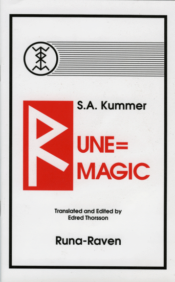 There are several statements made, or sentiments expressed, by S. A. Kummer in the text of Rune-Magic which might be found to be "offensive" by the politically correct, and some that are factually erroneous. Rather than censoring Kummer, or arbitrarily editing him, we have translated his work as it stood in 1933. This is in keeping with the general editorial philosophy of the publisher not to "sanitize" controversial works. It is felt that the documents will have more historical, as well as intellectual, value if they are allowed to speak for themselves. Notes have been added to the text where warranted.