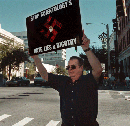 Twice he was arrested and charged after minor scuffles with Scientologists while picketing church properties. Once, he fired a shotgun into the air after Scientologists appeared at his New Hampshire farm.
