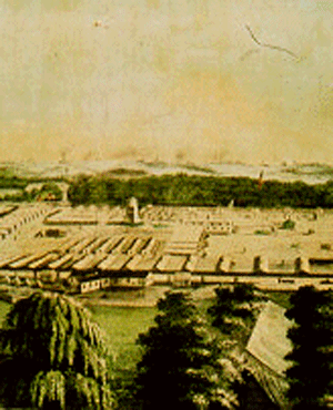 Figure 7. Formerly the barracks for the 1st Rhode Island Cavalry, Finley Hospital was a veritable "town, of wounds, sickness, and death." Courtesy of the National Library of Medicine.