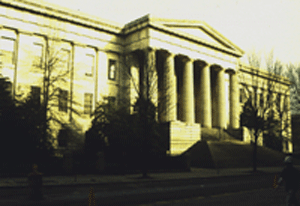 Figure 14. Designed by Robert Mills after the Parthenon, the U.S. Patent Office Building was hailed by Whitman as "that noblest of Washington buildings." Pressed into use as a hospital during the War, the building was also home to the U.S. Bureau of Indian Affairs, where Whitman worked from January through June of 1865. Contemporary photograph by the author. The hospitals that Whitman knew best as a visitor were the "barracks" and "model" hospitals available from 1862 onward. Carver, Cliffburne, Finley, Emory, and Campbell were built as Army barracks but were converted by the government to hospitals after their regiments departed for the battlefront. The model hospitals, by contrast, were especially built for that purpose by the military authorities and included Judiciary Square, Mount Pleasant, Armory Square, Stanton, Harewood, and Lincoln. [14] Whitman was first exposed to Washington's wounded at Campbell Hospital, located on Boundary Street (Florida Avenue, N.W.), between Fifth and Sixth streets. Soon after arriving in the city, the poet visited two wounded members of George Whitman's 51st New York Volunteers: John Lowery, recovering from the amputation of his left forearm, and Amos Vliet, whose feet had been frozen. At the war's close, Campbell housed Freedmen's Hospital, the predecessor to today's Howard University Hospital. One of Whitman's last hospital visits, made in February 1866, was to Harewood on the grounds of William Wilson Corcoran's country estate near Soldier's Home off Seventh Street, N.W. Whitman sat by the side of Thomas King, a former soldier in the 2nd District Colored Regiment, as a Catholic priest administered the last rites to the dying consumptive. [15]