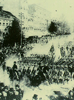 Figure 24. Illustration of the Grand Review of Union Troops, May 23–24, 1865, looking down Pennsylvania Avenue toward the Capitol. "For two days now," Whitman wrote on May 24, "the broad spaces of Pennsylvania avenue have been alive with a magnificent sight, the returning armies." Courtesy of the National Archives.