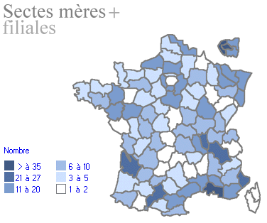 NR : non répertorié. Source : ADFI Paris In addition, the various experts heard by the Commission, in general, confirmed that during recent years, the cult movement has, in terms of structures as well as in number of followers, developed considerably, even if they do not have precise statistical data on this tendency. Beyond the difficulties of measurement, it does not appear contestable that the cult phenomenon is in France quite real today, and that it seems in progression. In addition, the characteristics of its evolution allows us to predict potentialities of expansion which worry your commission. [TRANSLATOR'S NOTE: From this point in the report forward, I am translating "secte" as "sect" rather than "cult." I began by using "cult" because of the negative connotations the word "secte" seems to have in French and also because they used the word to describe groups Americans would call cults: the Branch Davidians, Solar Temple, Jonestown, etc. In this part of the report, they discuss sects from a historical perspective. The term "secte" is very broad, and can also refer to the beginnings of Christianity itself, which while considered a sect by American standards, would not be considered a cult. It seemed better to use the English word most similar to the French term.] C. A PHENOMENON WITH EXPANSION POTENTIAL The sectarian phenomenon has been known for a few decades of significant evolutions which influence the currently noted tendencies; a consideration in perspective appreciation additionally shows the tendency to a potential expansion. It is obviously not possible to proceed within the framework of this report, of which it is moreover not the object, to a historical study of the sectarian phenomenon, in which the specialists underline permanence in time and the universality. Tite Live in his work "The Sects [Nuns?] in Greece and in Rome" was devoted already to a detailed account of the business of the Orgies, followers of the worship of Bacchus. Under the Roman empire, the first Christian communities were persecuted as well because of their refusal of the oath to the Emperor as because of the charges of sorcery (night meetings) or anthropophagy (rite of the communion) whose they were the object. The lawsuits in sorcery of which were victims in the Middle Ages until the beginning of the Reform, nearly 100,000 people in Europe testify to persistence to the sectarian phenomenon. The Christian religions are not the only source of examples: thus the Islam whose current esoteric is represented by the Sufism it gave rise to the sect of Hashishins, which fought Holy Land Templars. The recent evolution of the sectarian phenomenon makes it possible however respectively to release a certain number of main tendencies relating to the nature of the sects, their organization, the topics developed by them, the way in which they are perceived finally. A study of the sects currently established in France shows that those settled in two vague but quite distinct groups. The first emerged at the beginning of the 20th century, which saw religious movements born for the majority in Anglo-Saxon countries [enraciner? coming from the same race? descendents?] from the French society. Jehovah's Witnesses, Mormons, Pentecostals, Adventists, Baptists: all these movements resulting from the protesting world joined their dispute of the official doctrines of the Church to that already expressed by groups resulting from catholic mobility (Antoinistes, followers of the Christ of Montfavet). The second wave breaks at the end of the years 1960, always coming from the United States, but marked by a greater oriental print on the one hand, esoteric or gnostic on the other hand. It is relevant to note inn particular the International Association of Krishna Consciousness (founded in 1966), Association for the Unification of World Christianity (AUCM, or Moon sect) and Soka Gakka•. In accordance with the second current, one will cite the groups related to Rosicrucian brotherhood, the Church of Scientology or the anthroposophie [humanism?]. Other sects proposing of the total alternatives founded on ecology (Ecoovie), the belief in extraterrestrial (Movement ra‘lien), the techniques of meditation (Meditation transcendantale), even fraternity (New Acropolis) also make fast great strides. These oriental and esoteric movements should not however make us forget the permanence, even the rise to power, of movements resulting from the Judeo-Christian trunk, which they are millenarists (Jehovah's Witnesses, nebula of the movements of the New Age) or [guŽrisseurs?] (Invitation with the Intense Life, IVI). This evolution, traced rapidly, makes it possible to release a certain number of characteristics: - increasing proliferation of these movements, relatively recent origin. No classification nor description can be regarded as final or satisfactory, so much of multiple movements mix the kinds or the influences previously definite: if the general information counts with a relative precision the movements being able to be qualified "sects", any enumeration on the matter incurs the reproach to be incomplete, because of its restrictive nature; - the increasing part which plays in this movement the entirely new organizations of denominational origin proposing a total explanation of the world, to the detriment of the organizations being presented in the form of a secession, a schism of a Church previously established; - evolution in the nature of the touched public. The Protestant movements of the first wave recruited their followers in relatively underprivileged mediums, at the adult people, generally of the female sex. The organizations being developed after 1968 were characterized by the youth and the co-education of their public, resulting in general from the middle class. Beyond these elements relating to the nature of the sects, one in general notes other common points which, without applying to the whole of the sects quoted above, 
