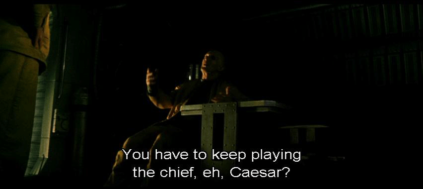 [Cesar] I'm not. I'm advising you. Things have changed here. [Attila] Changed? You can say that again. [Cesar] What? [Attila] You have to keep playing the chief, eh, Caesar? [Cesar] That alarm? [Attila] That was me! Me! I set it off! [Buddha] You'd need the gear.