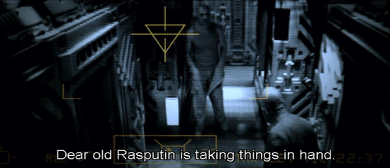 [Charon] The detention quarters are in the levels just below us. Look. The new arrival. Time for him to meet his playmates. They're tagged for permanent tracking. Dear old Rasputin is taking things in hand. Look. That's Rasputin.