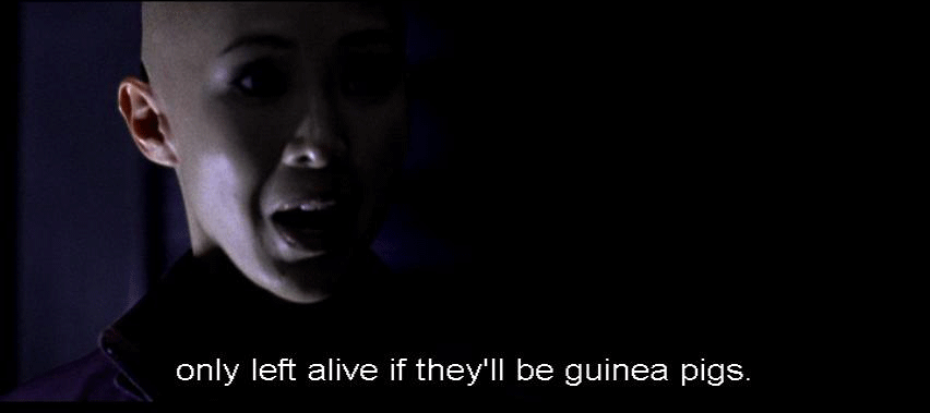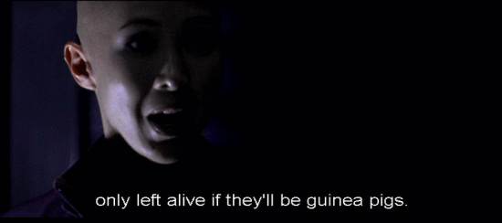 They're the worst kind of criminal. only left alive if they'll be guinea pigs. Why does the word shock you? [Persephone] As an expert in human, even criminal, behavior, I'm against using the word "guinea pig."