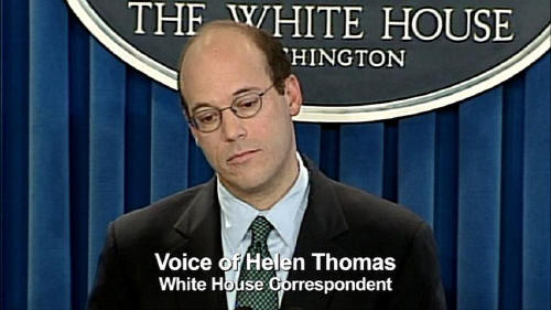 This company is about money, not conspiracies to run the world or engineer political maneuvering and things like that. [Librarian's Comment: "Bullshit!"] It's about making money, and it's about making a lot of money. And they've done very well. [Helen Thomas, White House Correspondent] I could get you on-the-record on this question. In the White House view, there is no ethical conflict in former President Bush and former Secretary of State Jim Baker using their contacts with world leaders to represent one of the most well-known military arms dealers, the Carlyle Group? [Whitehouse Spokesman] The president has full faith that his family will conform with all proper ethics laws and will act properly in their conduct. [Moore] Okay, let's say one group of people, like the American people pay you $400,000 a year to be president of the United States.